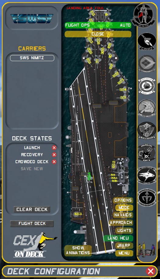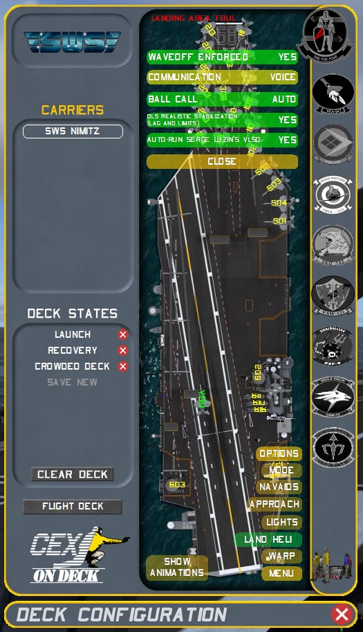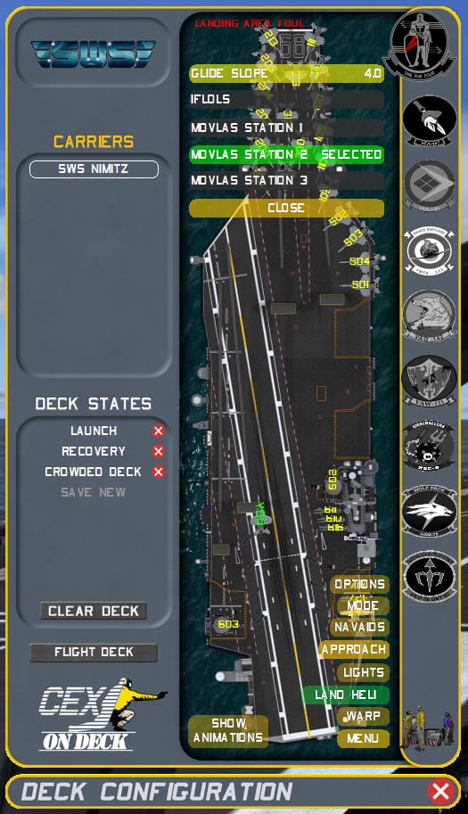 The deck gauge also allows for control over the ships’ many animations such as elevators, LSO platform or bubbles.