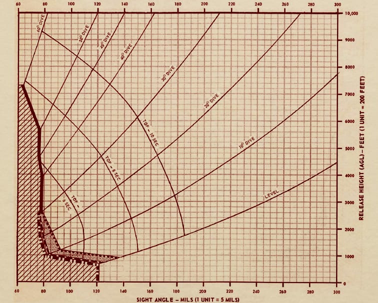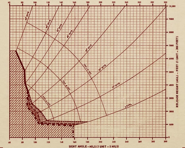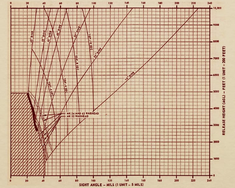 1. find the chart for the true airspeed at which you will deploy the weapon