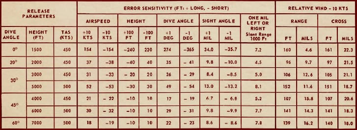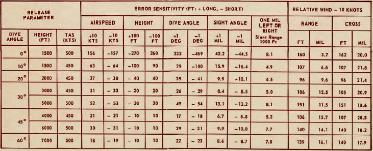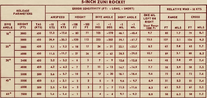 • LAU-10 a and LAU-33 a 5” Zuni rocket mil setting charts
