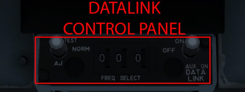 The datalink control panel is located in the rear cockpit, immediately below the RADAR scope.