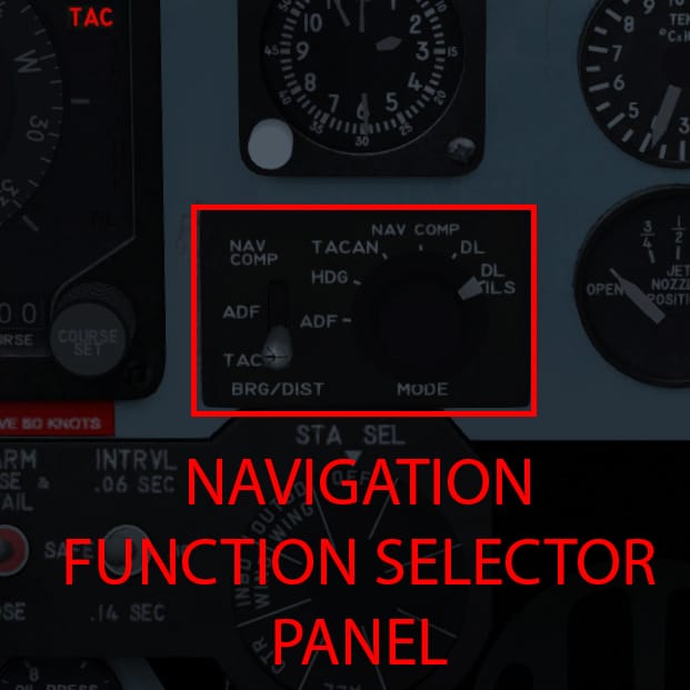 The navigation function selector panel in the F-4N has been replaced with a six-position panel, which now has the options DL and DL-ILS.With the knob set to DL, distance and bearing information from the dataling is relayed to the aircraft’s HIS.With the knob set to DL-ILS, the glideslope component of the ADI is also activated. DL-ILS is the mode used with the ACLS.