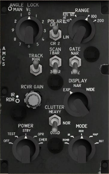 The RADAR control panel is used by the RIO to power-up the RADAR system as well as change between different RADAR modes. Its operation is covered in the next chapter .