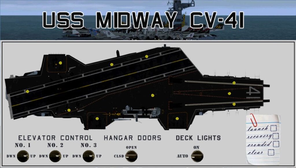 NOTE: The Midway class carriers are NOT COMPATIBLE with the new Dynamic Deck Editor that appears under Add-ons->SWS Carriers->Deck config. This package uses the legacy panel system that appeared in the initial release.