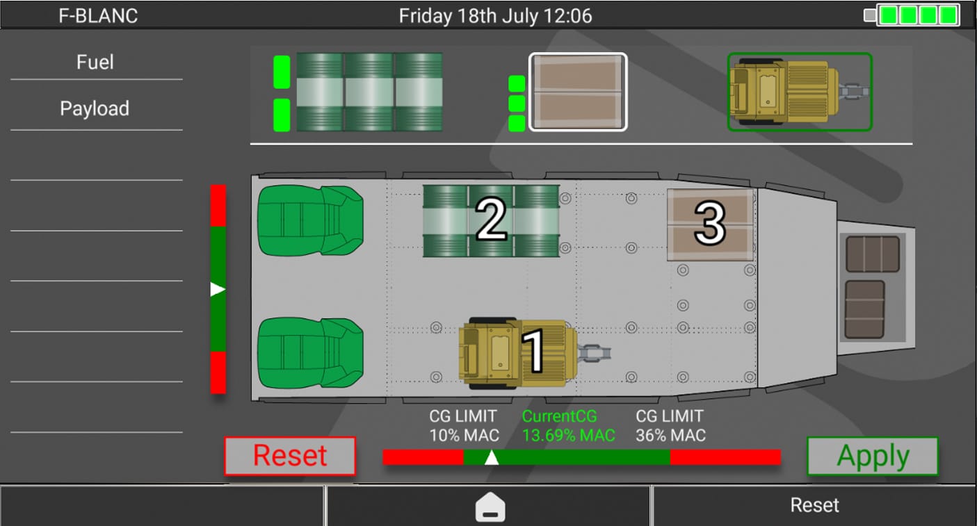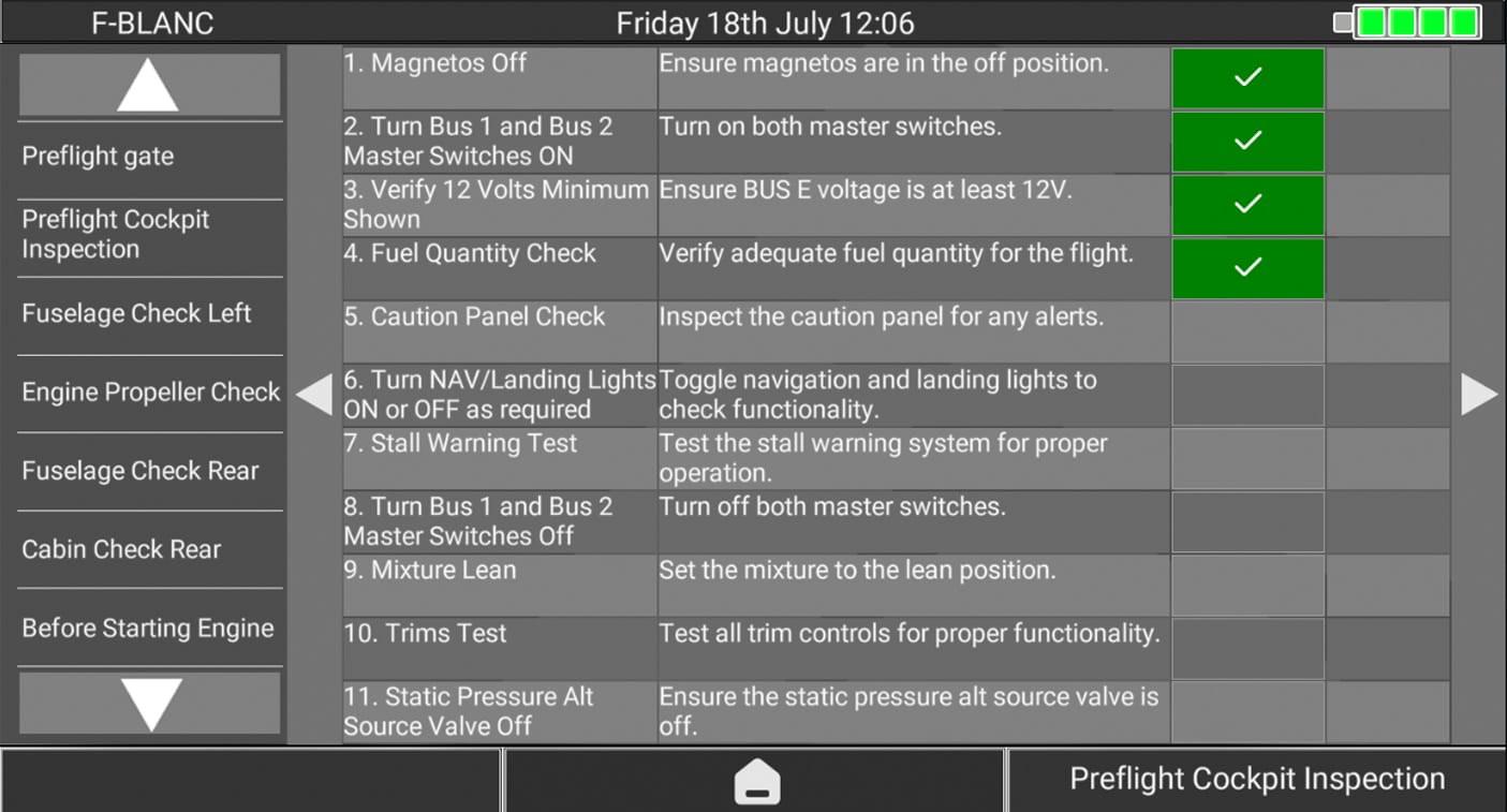 • Aircraft settings: from selecting GPS to washing the plane, all settings for the aircraft can be accessed through the tablet.