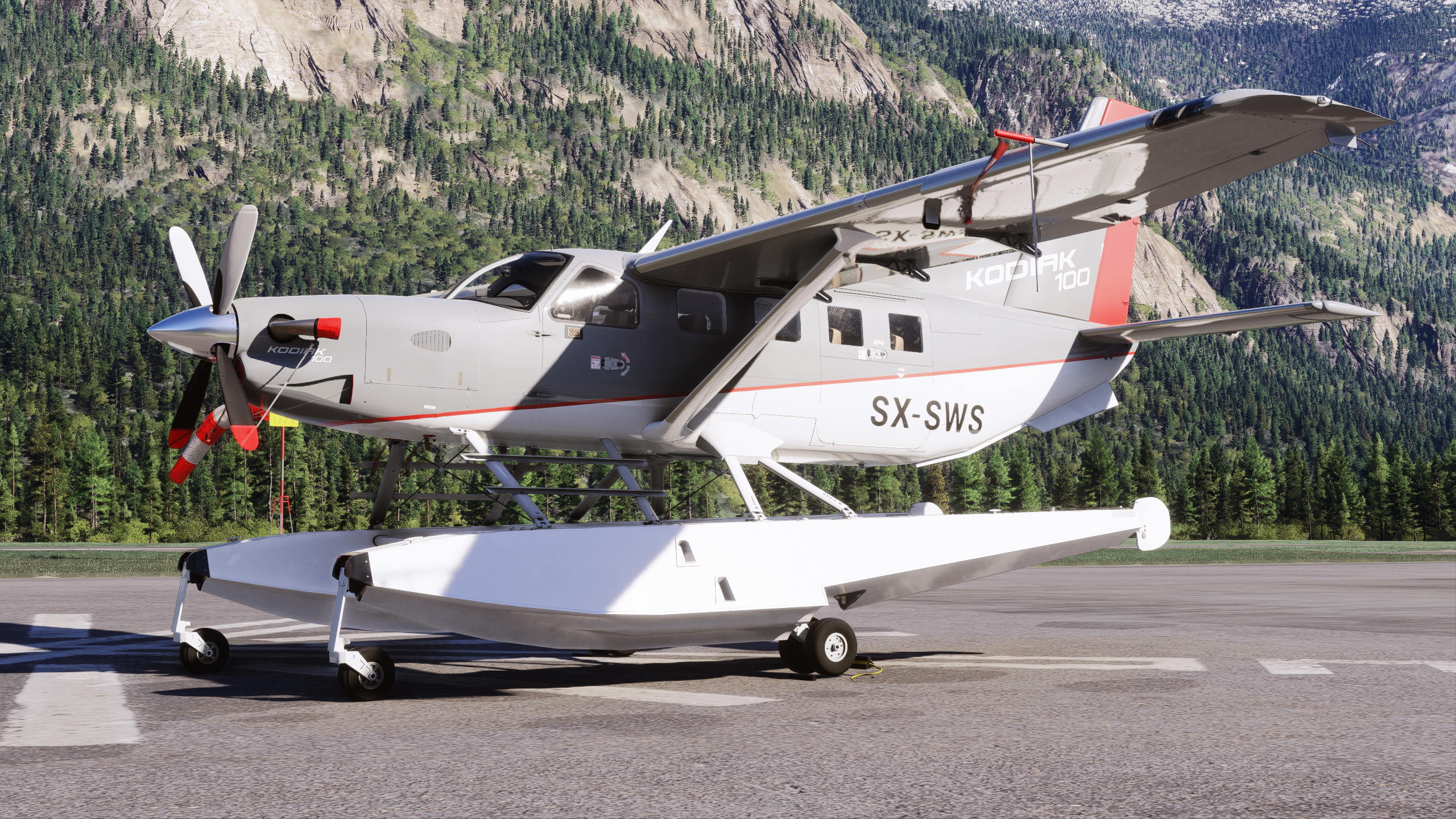 Capable of taking-off from land and water, the Amphibian Kodiak 100 Series III is finally in Microsoft Flight Simulator. A versatile workhorse powered by 750 horsepower, the SWS Kodiak 100 Amphibian builds upon the solid foundation of our wheeled variant. Hear the propeller roar as you use beta range to taxi and turn tight in the water using the rudders, or lower the gear and taxi out to land. The best turboprop for MSFS can now visit even more (!) places than before.