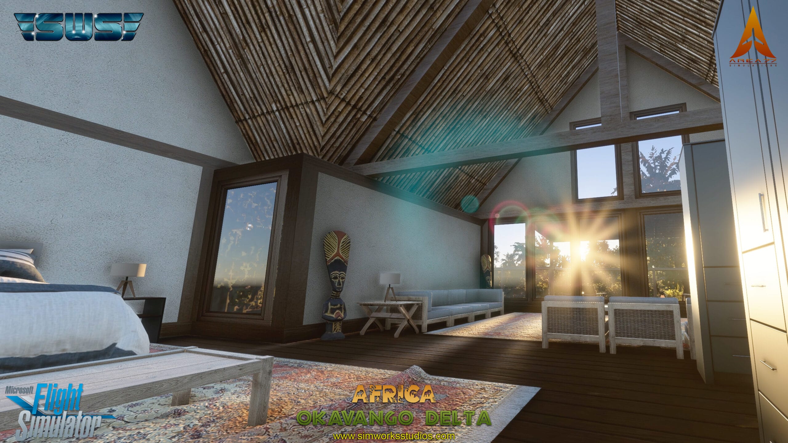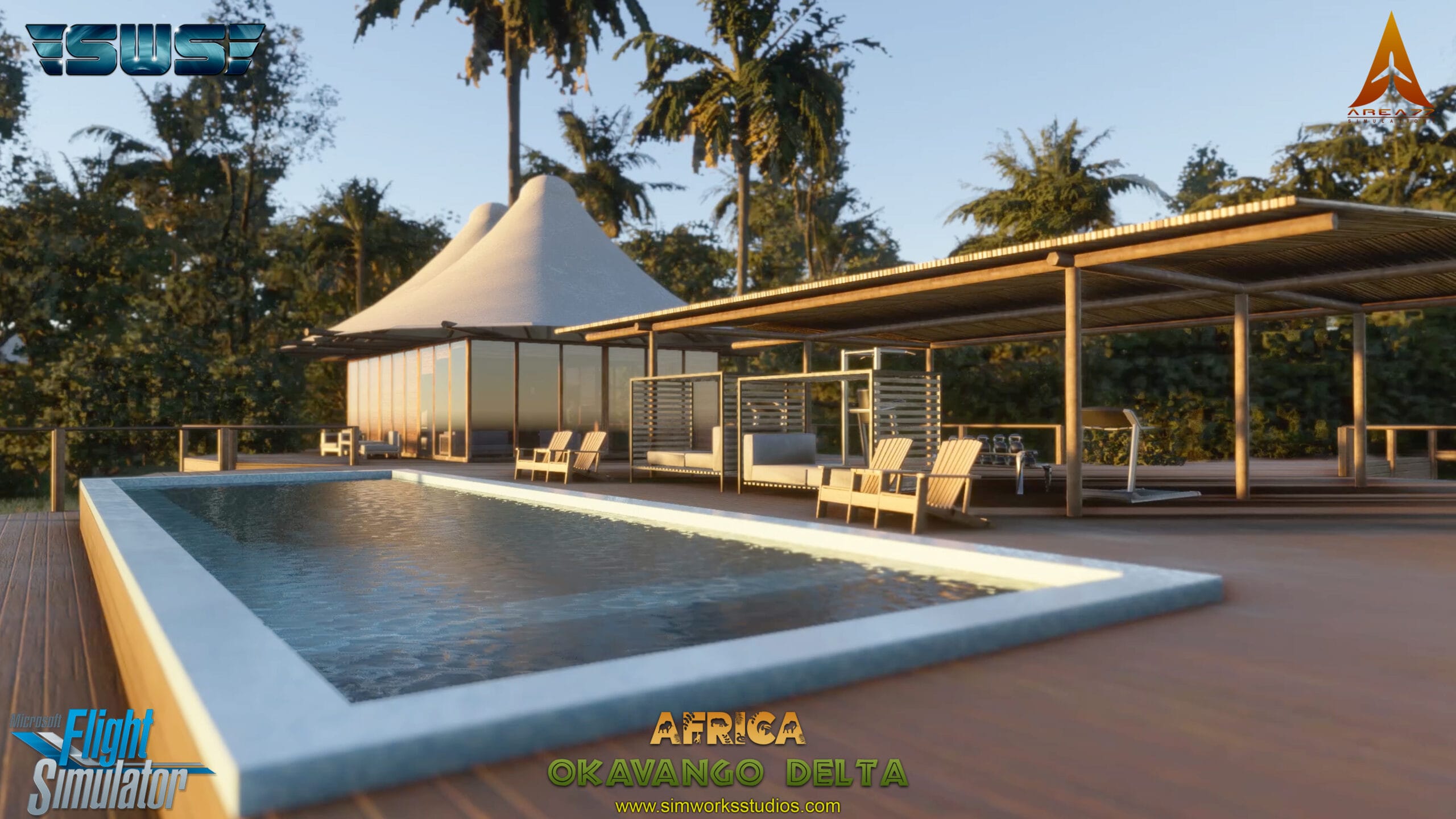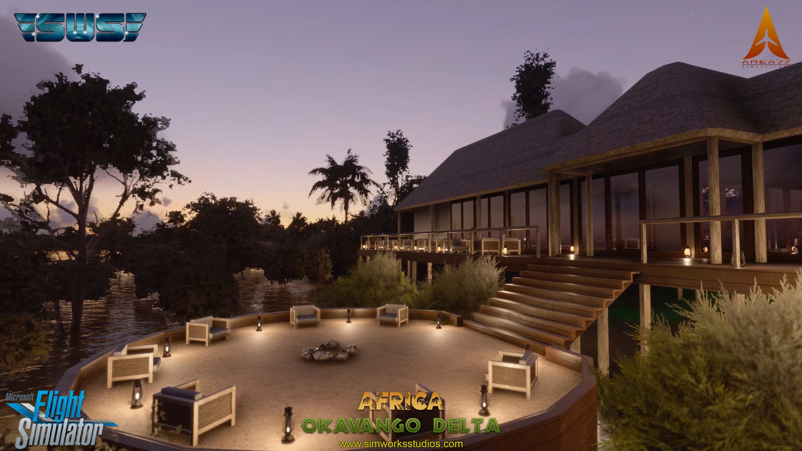 Created from the ground up using the best techniques available in Microsoft Flight Simulator, the SWS Okavango Delta is not just a scenery, but an experience like no other. Whether flying, droning or driving, there is always something to see, as the Okavango wetlands are teeming with animals, tourists and safari camps.